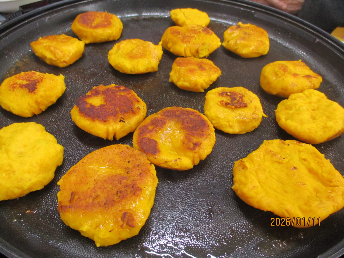 ホットプレートの上で焼いていきます。