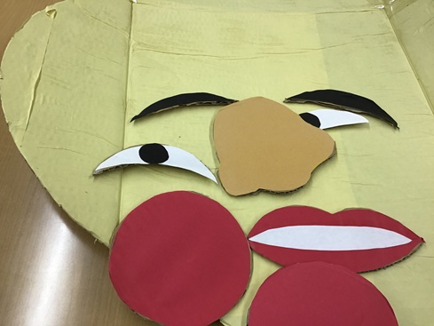 『えーっと、眉毛はこの辺やから目はこの辺でええかな??』